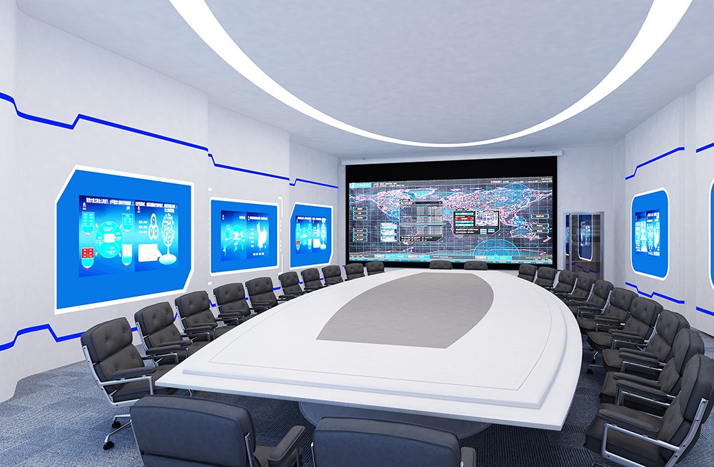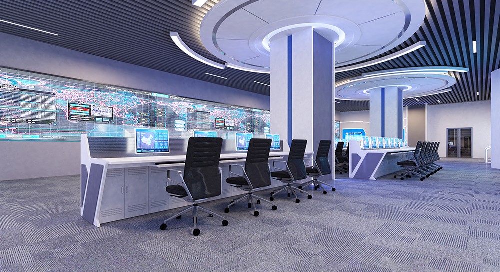 設(shè)計(jì)理念:項(xiàng)目為特變電工應(yīng)急指揮調(diào)度中心建設(shè)項(xiàng)目,該項(xiàng)目包含指揮大廳、機(jī)房、辦公室和會(huì)議室;本項(xiàng)目整體設(shè)計(jì)思想是以指揮調(diào)度中心的主要職能定位為建設(shè)目標(biāo),以調(diào)度指揮人員為核心,以大屏幕顯示系統(tǒng)為窗口,以各類信息系統(tǒng)為支持平臺(tái),打造人機(jī)和諧的調(diào)度指揮中心工作環(huán)境。設(shè)計(jì)方案強(qiáng)調(diào)的是整體設(shè)計(jì)和人性化設(shè)計(jì),以確保各個(gè)相關(guān)系統(tǒng)的有機(jī)融合。整體設(shè)計(jì)體現(xiàn)了企業(yè)調(diào)度指揮中心的管理理念和管理風(fēng)格,展現(xiàn)一個(gè)前衛(wèi)、時(shí)尚的科技感空間,營(yíng)造舒適的工作空間氛圍,有利于工作人員放松和緩解疲勞。