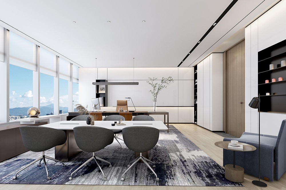 設(shè)計(jì)理念:運(yùn)用現(xiàn)代簡約風(fēng)格,打造出一個(gè)明亮、寬敞、舒適的辦公環(huán)境。前臺(tái)的朗闊,帶來視覺上的感官提升,讓到訪者眼前一亮。隨著辦公區(qū)域動(dòng)線的規(guī)劃,使用者的舒適感與高效感,逐漸呈現(xiàn),思維也隨之流轉(zhuǎn)。老板辦公室與貴賓室,采用了更為成熟的簡中式風(fēng)格,簡約不簡單,穩(wěn)重不沉悶。