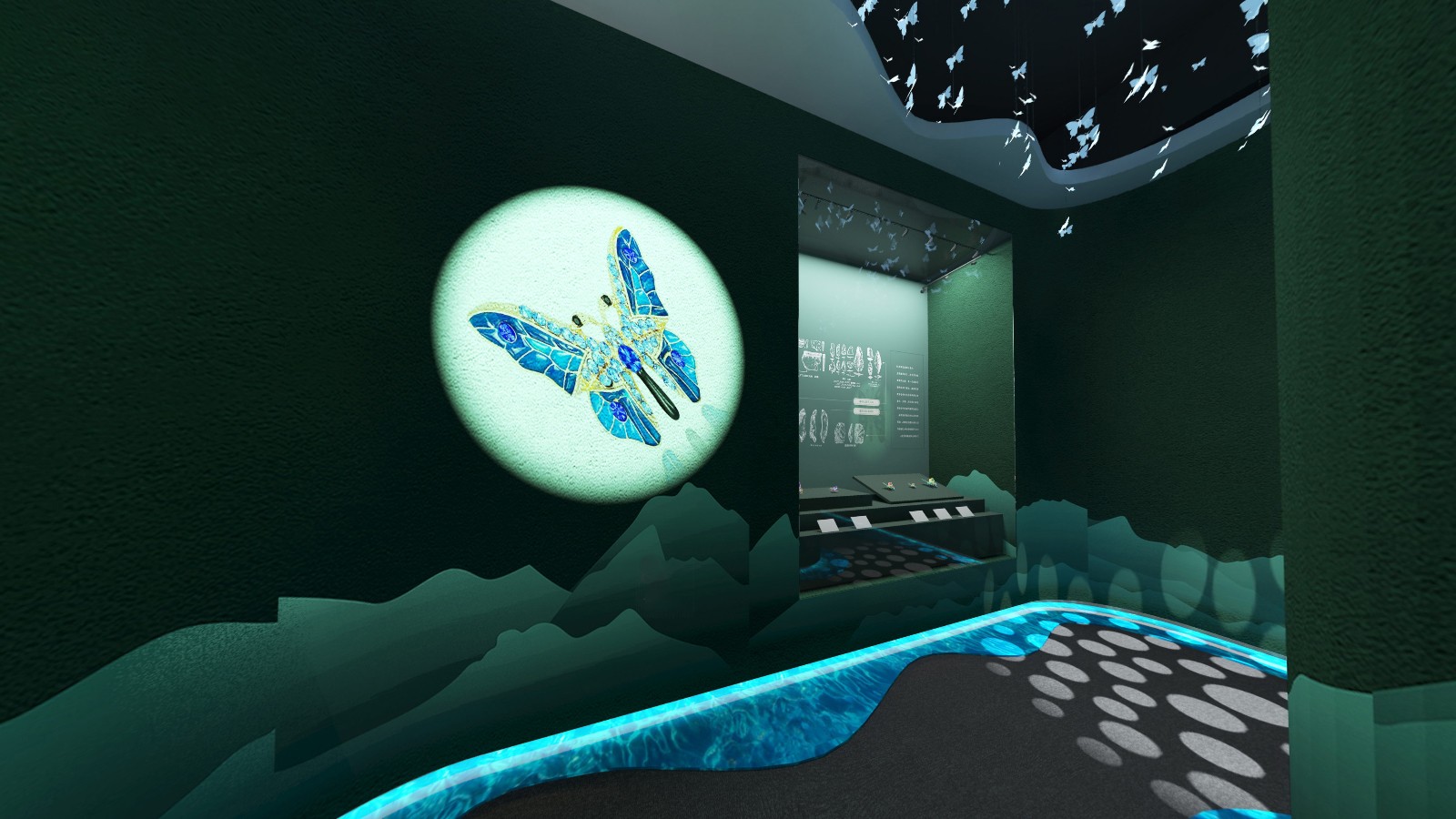 通過巧妙地融合自然元素,展廳空間被轉(zhuǎn)化為一個(gè)生動(dòng)的生態(tài)系統(tǒng),不僅為珠寶藝術(shù)提供了一個(gè)展示其獨(dú)特魅力的舞臺,還有效地傳達(dá)了產(chǎn)品的設(shè)計(jì)理念,不僅增強(qiáng)了參觀者的感官體驗(yàn),也使每一件珠寶在自然氛圍的映襯下散發(fā)獨(dú)有的光彩。