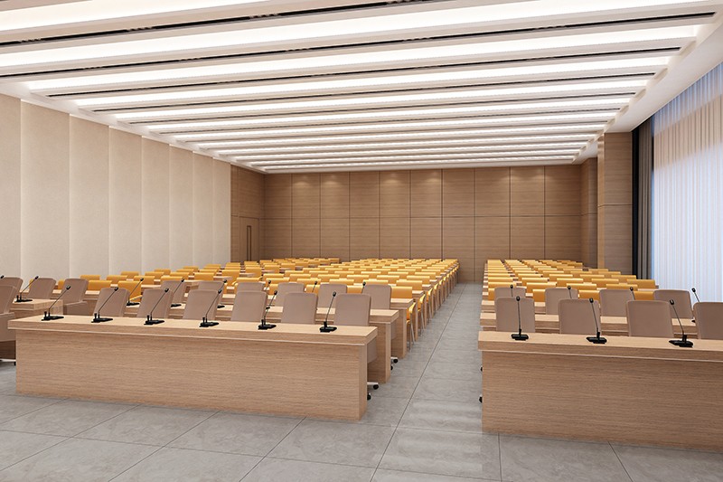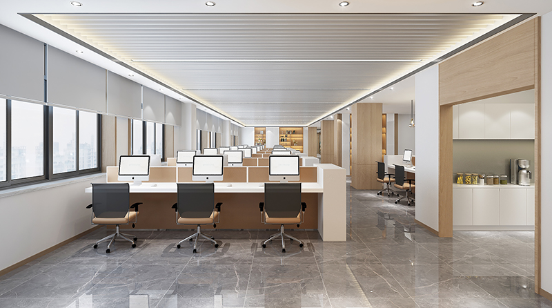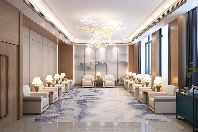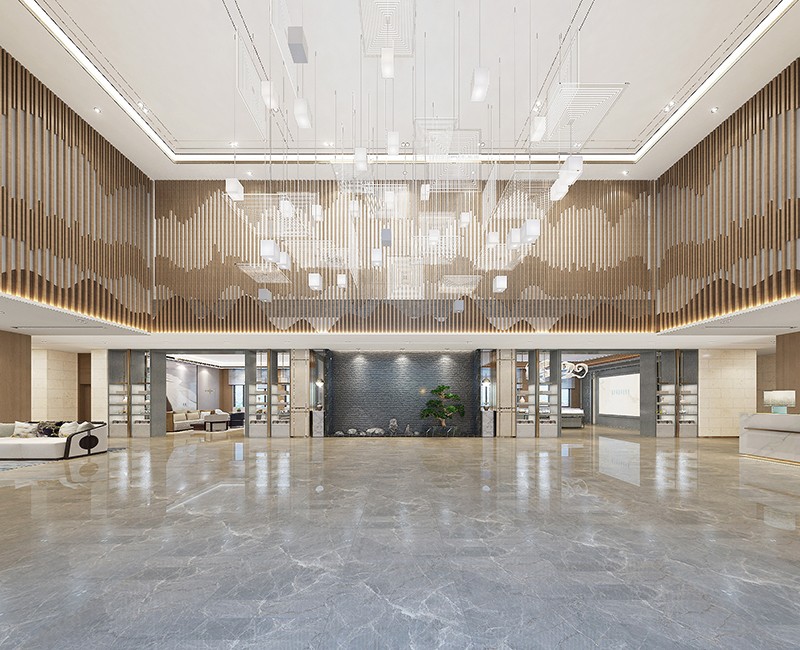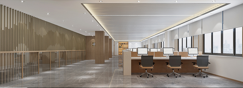 設(shè)計理念:該項(xiàng)目為藥業(yè)企業(yè)辦公樓裝修,整個空間裝修風(fēng)格為新中式,選用木色作為主要色調(diào),黑白色和金屬色描畫出輪廓,展現(xiàn)溫馨親和并且體現(xiàn)出作為辦公空間的大氣感。設(shè)計師在滿足基本功能需求的前提下,借助空間架構(gòu)與細(xì)節(jié)設(shè)計,呈現(xiàn)空間的藝術(shù)性和當(dāng)代性。該裝修設(shè)計項(xiàng)目是一個企業(yè)集團(tuán)辦公樓內(nèi)的餐廳空間,包括一層的員工餐廳和三層的餐廳包間。設(shè)計一樓的員工餐廳主要體現(xiàn)干凈整潔明亮的特點(diǎn)。大開敞的就餐空間采光明亮,簡潔而鮮明的內(nèi)飾與環(huán)境自然融為一體。讓人在獲得無盡放松心情的同時,感受古與今的文化碰撞和獨(dú)樹一幟的品牌力量。包間的色調(diào)以灰白色、古銅色為主打色調(diào),咖色原木色點(diǎn)綴,整個空間溫雅而舒適, 沉穩(wěn)而大氣。