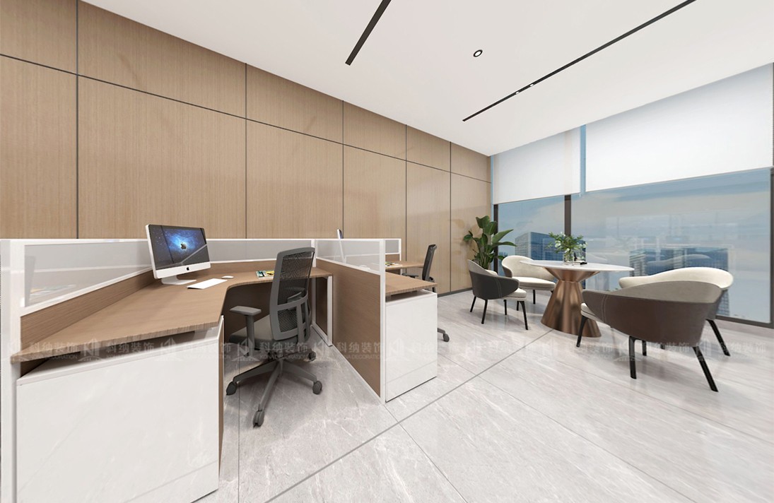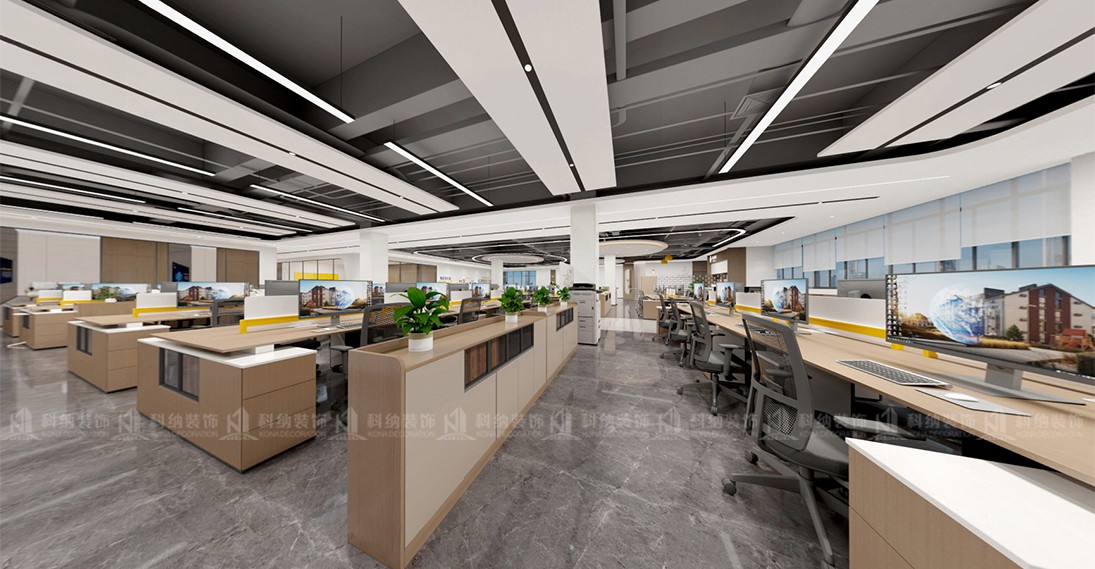 辦公空間的設(shè)計(jì)沿用了主體的設(shè)計(jì)風(fēng)格,對(duì)光線(xiàn)與工位格局進(jìn)行精心的設(shè)計(jì)布局,構(gòu) 建空間秩序感,為員工設(shè)計(jì)舒適的辦公環(huán)境。