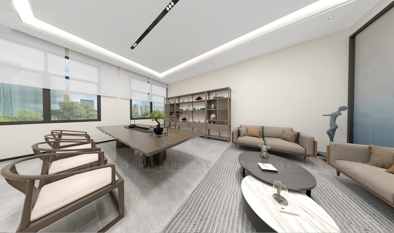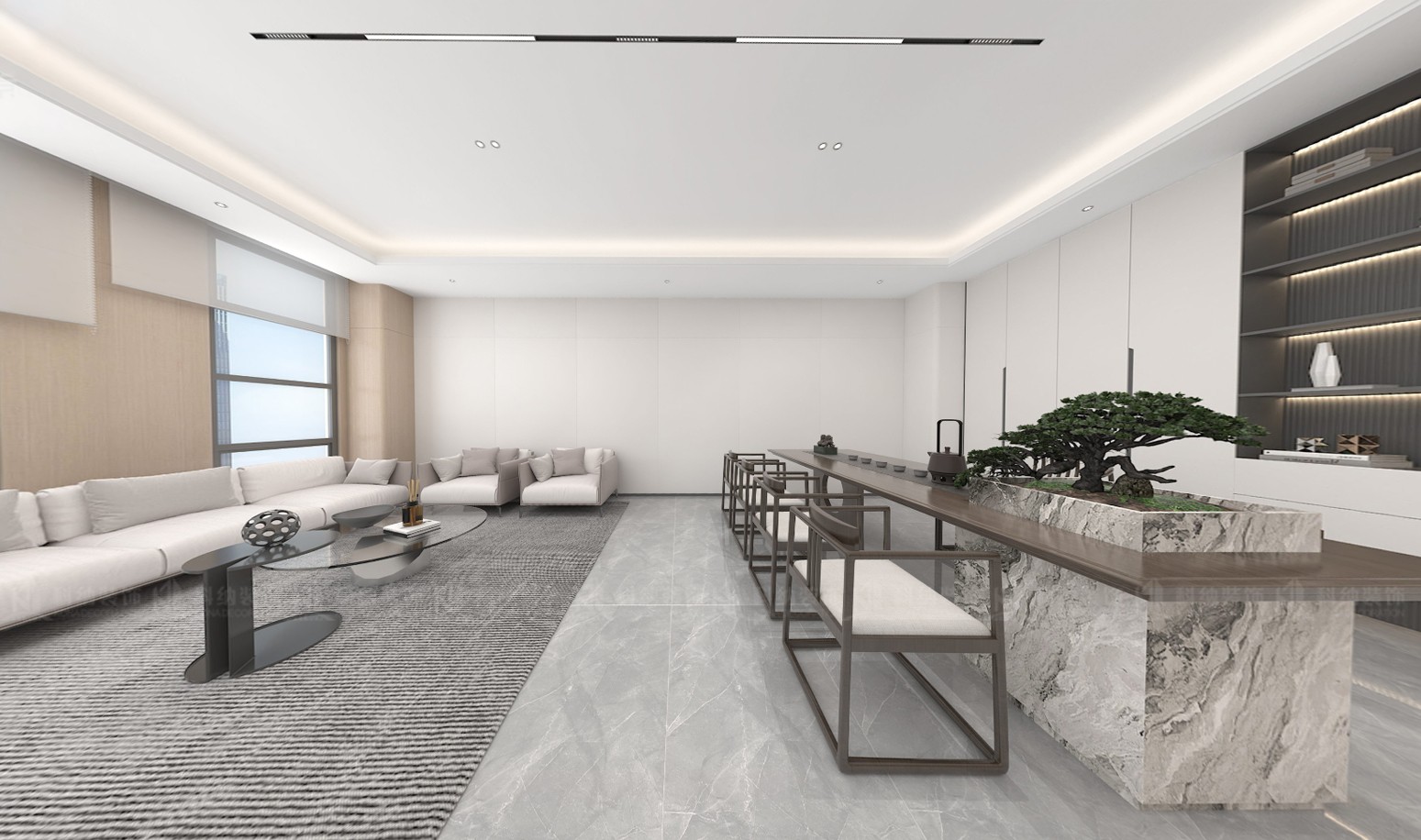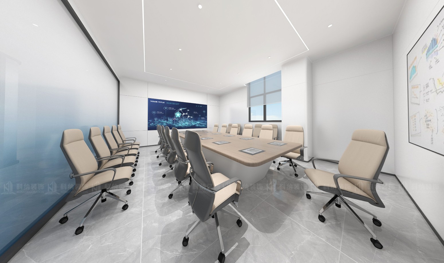 設(shè)計(jì)理念:本方案采用極簡(jiǎn)的設(shè)計(jì)手法,融合科技元素,選用現(xiàn)代新型材料和中性色調(diào),搭配動(dòng)態(tài)照明,營(yíng)造出專業(yè)活力的辦公氛圍。通透的玻璃墻設(shè)計(jì),冷色調(diào)主調(diào)搭配流暢的天花板線條,再加上獨(dú)特的燈光設(shè)計(jì),營(yíng)造出滿滿的未來感。整體的辦公空間強(qiáng)調(diào)開放性、靈活性體更彰顯出了企業(yè)的創(chuàng)新形象。