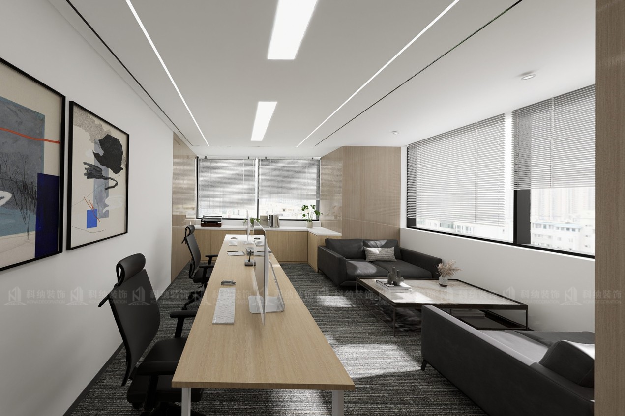 設(shè)計(jì)理念:在高端的商務(wù)辦公樓中,設(shè)計(jì)師采用靈活的設(shè)計(jì)手法,以現(xiàn)代簡(jiǎn)約風(fēng)格為客戶打造時(shí)尚大氣的辦公空間,巧妙拓展有限場(chǎng)地的使用效能。整個(gè)空間采用簡(jiǎn)潔的線條和中性色調(diào),營(yíng)造出一種現(xiàn)代、專業(yè)且舒適的工作環(huán)境,簡(jiǎn)約的設(shè)計(jì)有助于減少視覺干擾。靈活的空間布局適應(yīng)團(tuán)隊(duì)不同的工作需求,提升工作效率。