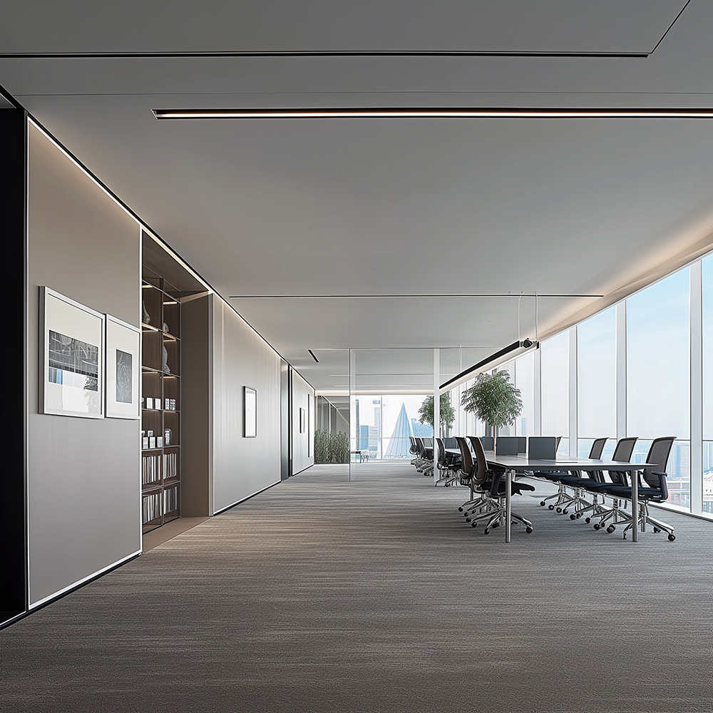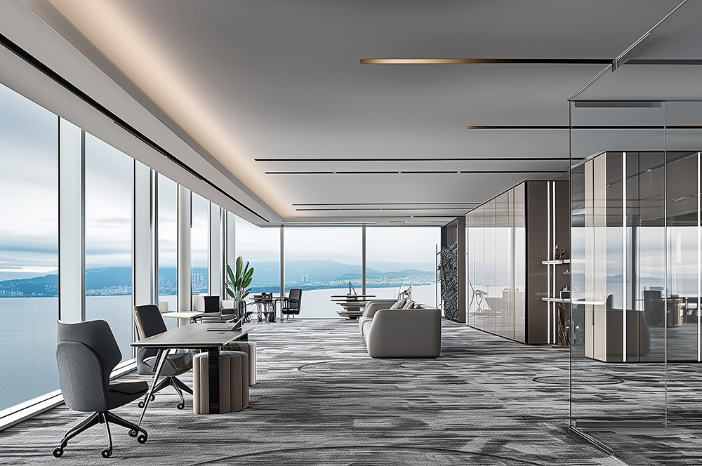 設(shè)計理念:高端寫字樓甲級辦公室的設(shè)計,核心在于“以用戶為中心,科技賦能,綠色可持續(xù)”。通過人性化空間規(guī)劃、智能化技術(shù)整合和環(huán)保材料應(yīng)用,打造一個既高效又舒適的辦公環(huán)境,同時體現(xiàn)企業(yè)品牌形象與長期價值。采用高透玻璃隔斷、可移動家具和開放式辦公區(qū),支持團隊協(xié)作與個人專注的切換。
