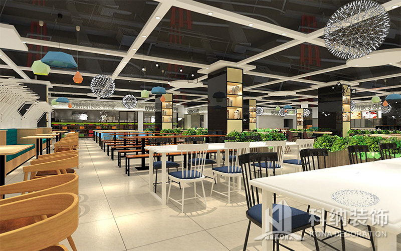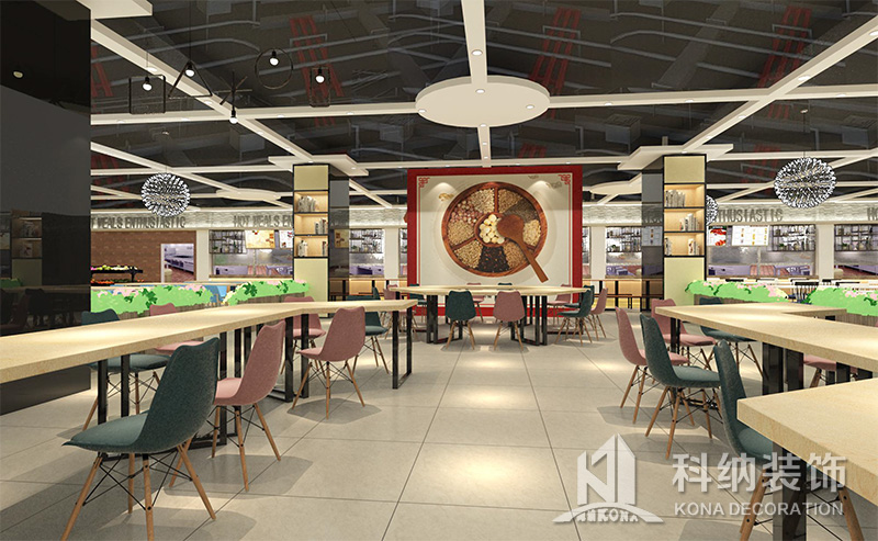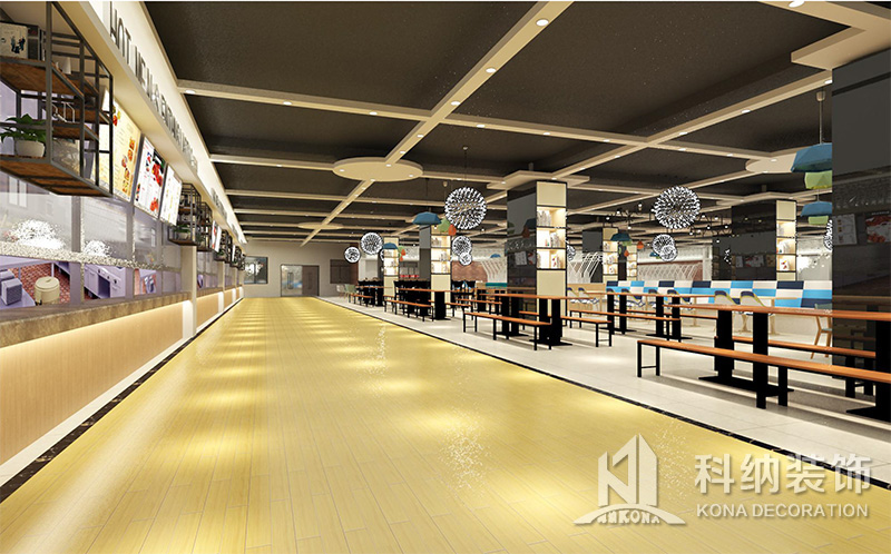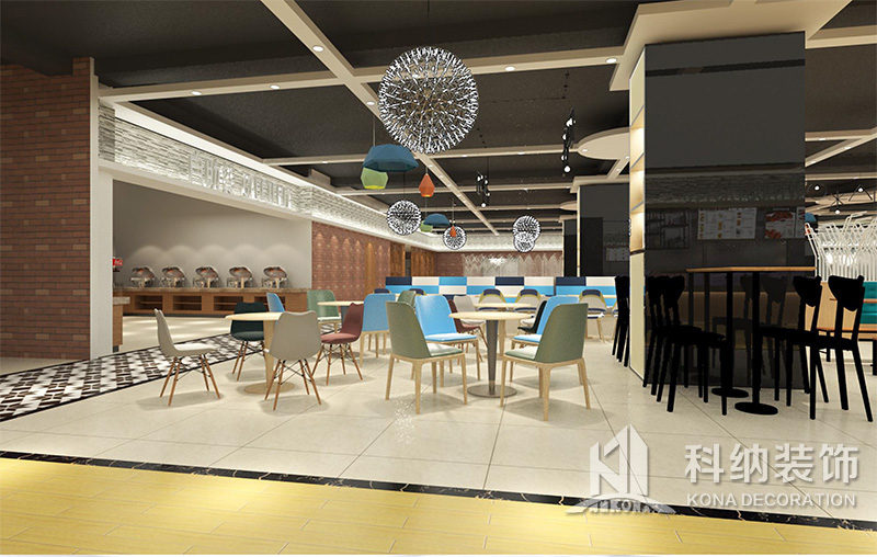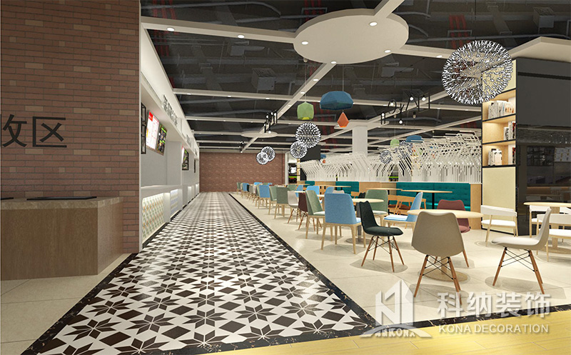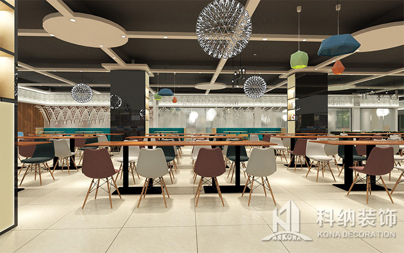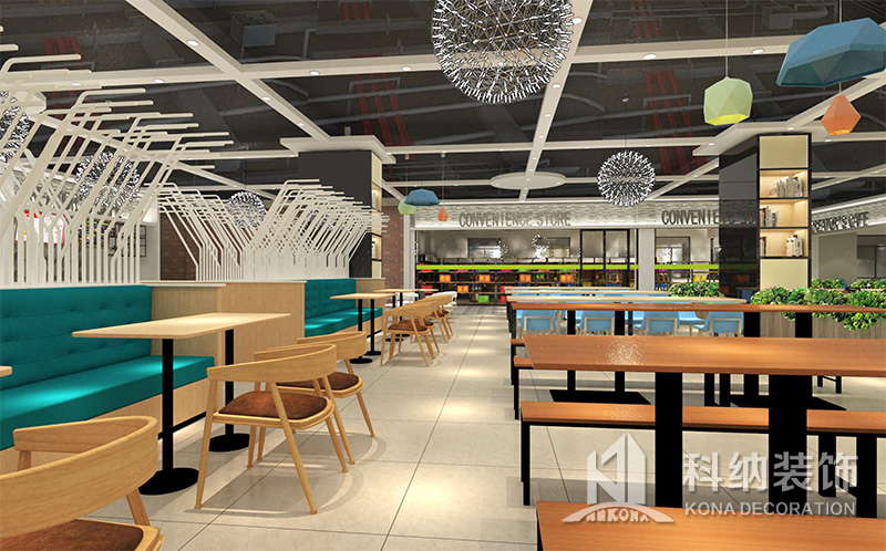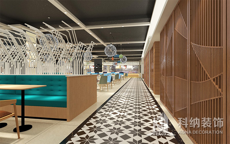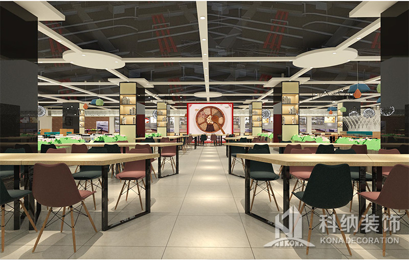 設(shè)計(jì)理念:該項(xiàng)目為嶺南職業(yè)學(xué)院清遠(yuǎn)校區(qū)休閑餐廳,一樓可同時(shí)容納723人數(shù),二樓513人。設(shè)置有廚房、就餐區(qū)、品牌門(mén)店、多功能活動(dòng)大廳、休閑區(qū)、自助餐區(qū)、接待包房等多個(gè)區(qū)域。設(shè)計(jì)師通過(guò)可移動(dòng)屏風(fēng)隔斷墻實(shí)現(xiàn)包廂可變性,一個(gè)大包廂或2-3個(gè)小包廂之間的變換,可根據(jù)用餐人數(shù)決定空間的大小。餐廳不僅僅是用餐的功能,更是一個(gè)社交與體驗(yàn)的場(chǎng)所,設(shè)計(jì)師在空間中設(shè)定了多種用餐場(chǎng)景,同時(shí)通過(guò)區(qū)域的劃分搭配不同座位的組合方式,從2人位到12人位,滿(mǎn)足了不同場(chǎng)景下的用餐需求。中心區(qū)域利用綠植劃分出來(lái),使空間彼此分隔又能保持空間的通透。視線(xiàn)透過(guò)折線(xiàn)陣列的間隙,讓隔斷若實(shí)若虛。包房?jī)?nèi)是傳統(tǒng)的中式宴請(qǐng)圓桌,和依舊灰色調(diào)為主的空間氛圍。墻面的裝飾畫(huà),沒(méi)有濃墨重彩的痕跡,只是寥寥幾筆,將所有的刻意掩埋。