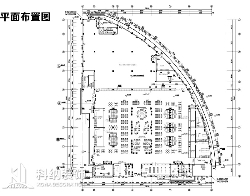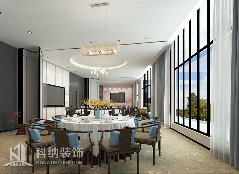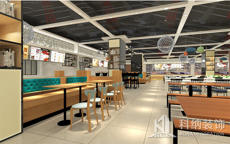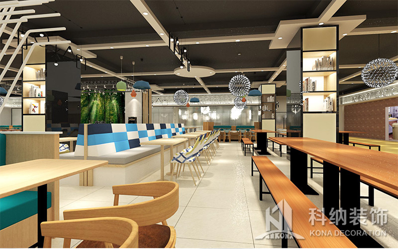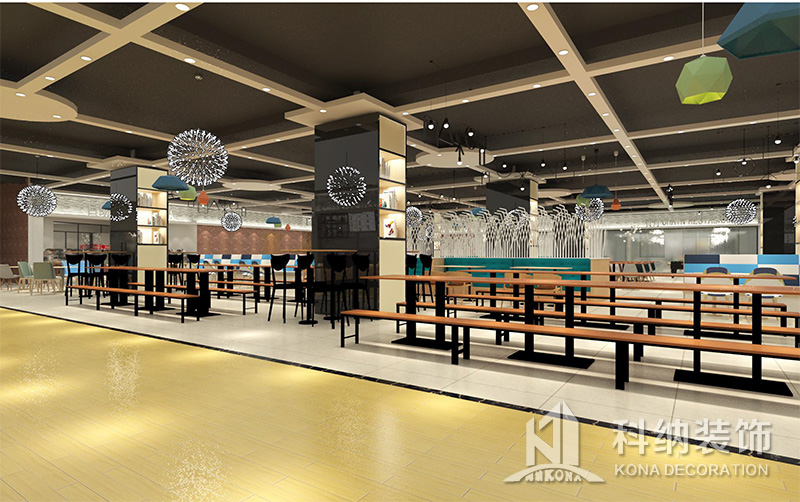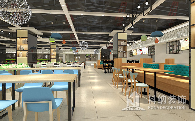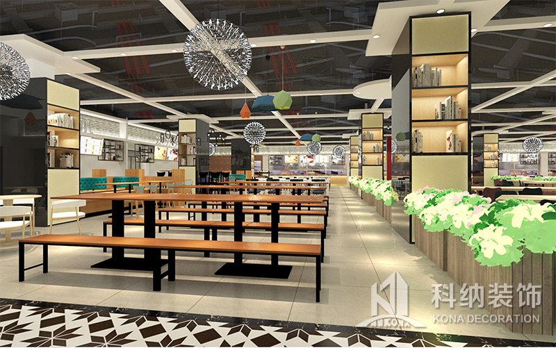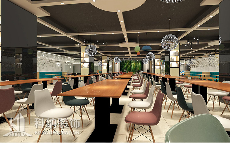 設(shè)計(jì)理念:該項(xiàng)目為嶺南職業(yè)學(xué)院清遠(yuǎn)校區(qū)休閑餐廳,一樓可同時(shí)容納723人數(shù),二樓513人。設(shè)置有廚房、就餐區(qū)、品牌門(mén)店、多功能活動(dòng)大廳、休閑區(qū)、自助餐區(qū)、接待包房等多個(gè)區(qū)域。設(shè)計(jì)師通過(guò)可移動(dòng)屏風(fēng)隔斷墻實(shí)現(xiàn)包廂可變性,一個(gè)大包廂或2-3個(gè)小包廂之間的變換,可根據(jù)用餐人數(shù)決定空間的大小。餐廳不僅僅是用餐的功能,更是一個(gè)社交與體驗(yàn)的場(chǎng)所,設(shè)計(jì)師在空間中設(shè)定了多種用餐場(chǎng)景,同時(shí)通過(guò)區(qū)域的劃分搭配不同座位的組合方式,從2人位到12人位,滿(mǎn)足了不同場(chǎng)景下的用餐需求。中心區(qū)域利用綠植劃分出來(lái),使空間彼此分隔又能保持空間的通透。視線(xiàn)透過(guò)折線(xiàn)陣列的間隙,讓隔斷若實(shí)若虛。包房?jī)?nèi)是傳統(tǒng)的中式宴請(qǐng)圓桌,和依舊灰色調(diào)為主的空間氛圍。墻面的裝飾畫(huà),沒(méi)有濃墨重彩的痕跡,只是寥寥幾筆,將所有的刻意掩埋。