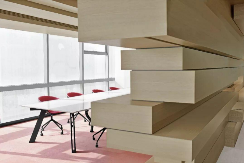 層高較低的辦公室,難免會(huì)給員工帶來壓抑之感,這時(shí),使用淡雅的淺色就可以中和建筑本身的不舒適感,在提升辦公室檔次之余,還能夠起到擴(kuò)大空間的視覺效果。特別是使用淺藍(lán)、淺綠做墻面,這個(gè)優(yōu)點(diǎn)尤為突出。