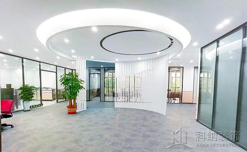 設(shè)計(jì)理念:該案例是嶺南學(xué)院清遠(yuǎn)校區(qū)行政辦公樓設(shè)計(jì)裝修項(xiàng)目,為了使行政樓更好地作為服務(wù)和辦公場(chǎng)所,設(shè)計(jì)師根據(jù)使用需求將一層設(shè)計(jì)為多功能綜合服務(wù)大廳;二層為校企合作基地,對(duì)外辦公;三層作為行政職能辦公室;四層為校領(lǐng)導(dǎo)、核心職能部門辦公室,對(duì)內(nèi)辦公;五層作為會(huì)議室和檔案室,用于內(nèi)部使用。這樣的規(guī)劃設(shè)計(jì)合理,各區(qū)域既聯(lián)系又互不影響,很好地將校內(nèi)外人員分流,最大程度地利用全部空間。天花圓形造型與線條組合,構(gòu)造出“宇宙星空軌跡”,飛機(jī)造型吊燈寓意學(xué)生以嶺南學(xué)院為起點(diǎn),學(xué)有所成,飛向?qū)儆谒麄兏髯缘念I(lǐng)域。墻面以護(hù)墻板裝飾,既起到保護(hù)墻體的作用,又與整體風(fēng)格相呼應(yīng)。