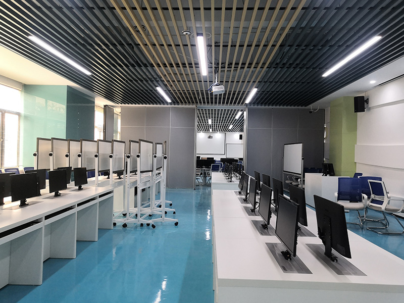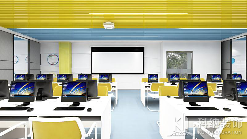 設(shè)計理念:清遠(yuǎn)校區(qū)經(jīng)營虛擬仿真中心裝修工程,教室的色調(diào)整體把控在藍(lán)色系上,寬敞的空間一眼望去變讓人感到十分的舒適,簡單明了,色彩上溫暖的淺色系與白色搭配也顯得非常的干凈,幾個不同教室用可移動屏風(fēng)隔斷,可變換多種風(fēng)格。