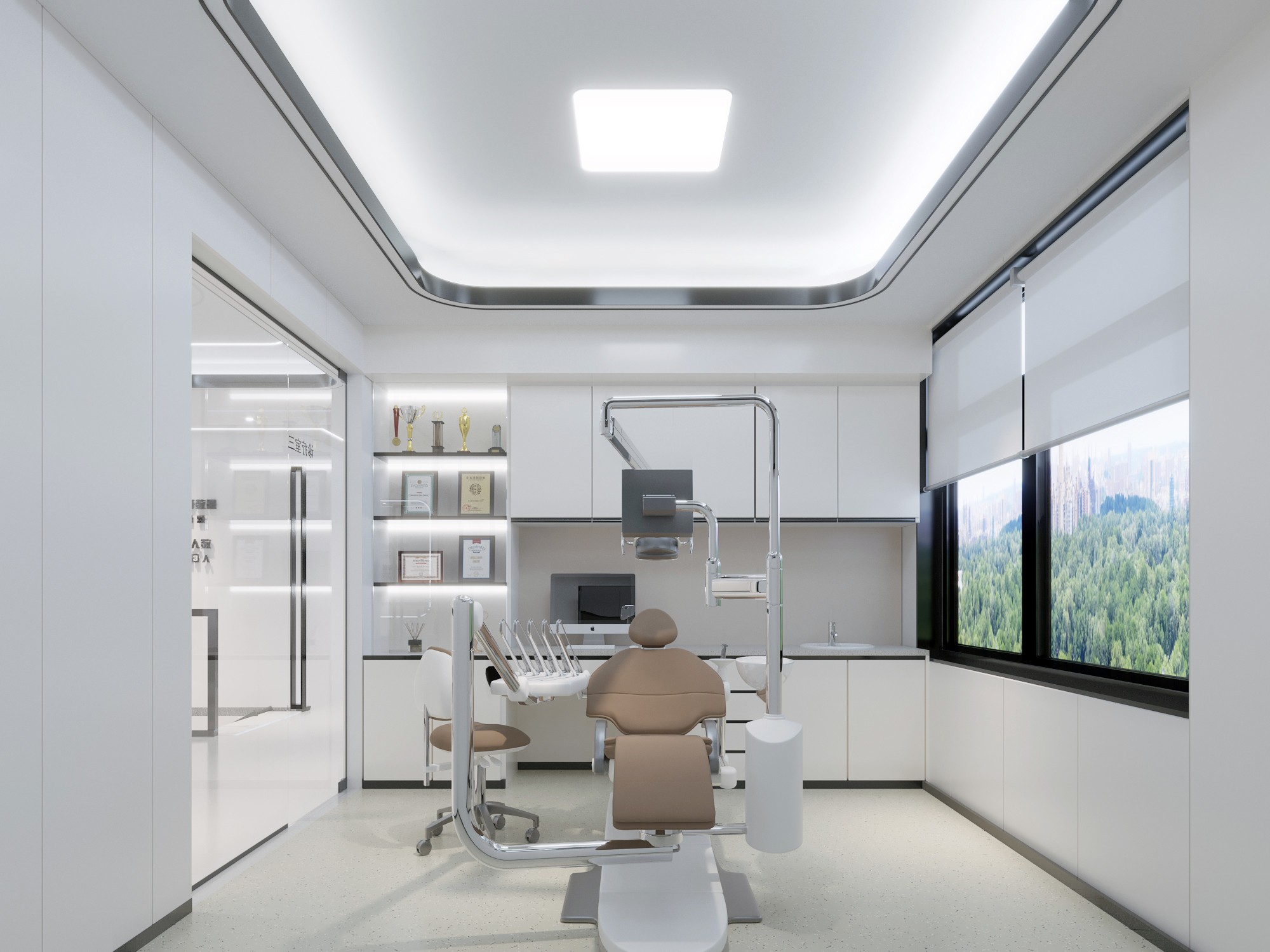 設(shè)計理念:融合科技質(zhì)感的材料元素,強(qiáng)調(diào)收納設(shè)計的標(biāo)準(zhǔn)化,營造清新簡潔、光亮通透的空間氛圍,同時注重空間色彩搭配和細(xì)節(jié)處理,打破傳統(tǒng)醫(yī)療空間形象,呈現(xiàn)出新型高端醫(yī)療空間設(shè)計趨勢。將潔白、健康的護(hù)齒理念融合當(dāng)代美學(xué),在細(xì)節(jié)上強(qiáng)調(diào)收納設(shè)計的標(biāo)準(zhǔn)化,每個細(xì)微局部遵循“不多余、重質(zhì)感”的裝飾原則,同時融入科技質(zhì)感的材料元素,從設(shè)計語言上構(gòu)建。